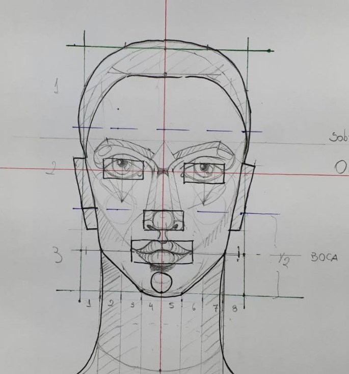 Este estudo objetiva compreender o processo de elaboração do rosto humano abrangendo o desenho e a ilustração da cabeça e seus elementos. Aqui é apresentado, pelo Método Cartesiano Cânones Estruturais para o Desenho de Moda. O desenvolvimento dos olhos, nariz, boca nas diferentes vistas: frente, 1/2 perfil e perfil 3/4. Além de técnicas de luz e sombra com hachuras e esfumados. Ao final deste estudo, o aluno será capaz de desenhar rostos completos femininos e masculinos desde as estruturas proporcionais até a ilustração com volumetria (3D) e texturas.