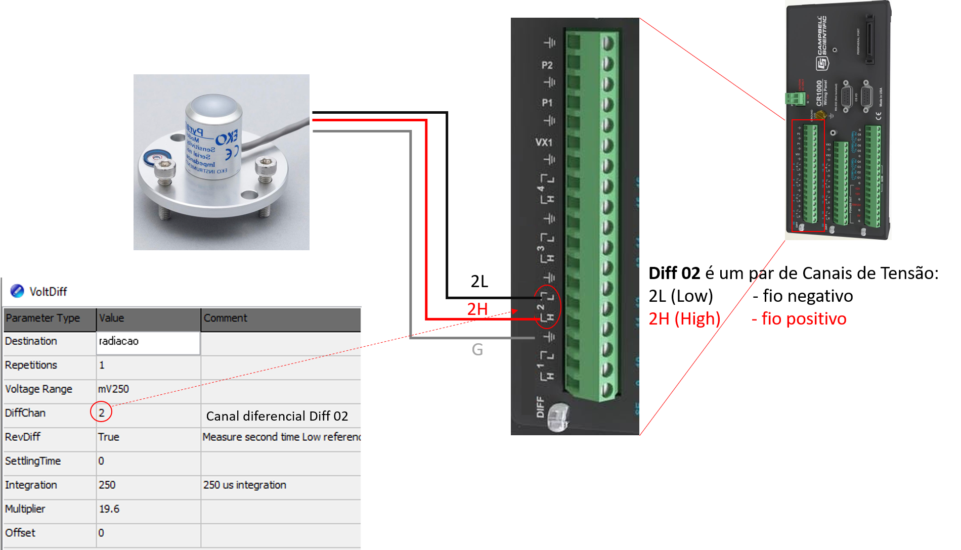 - Fiação do piranômetro para o Experimento 02 - Albedo