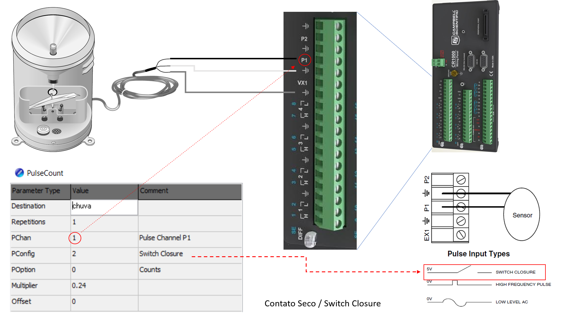 - Fiação do Pluviômetro