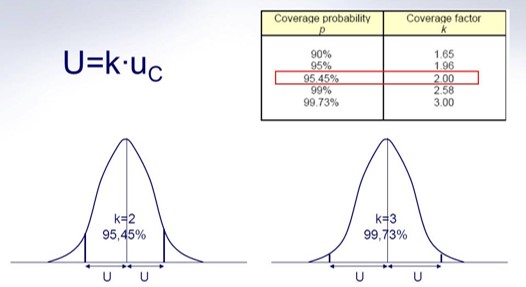 Geralmente se utiliza um fator de abrangência k=2 para representar um intervalo de confiança com probabilidade de 95,45% de ocorrer o resultado de medição apresentado.
