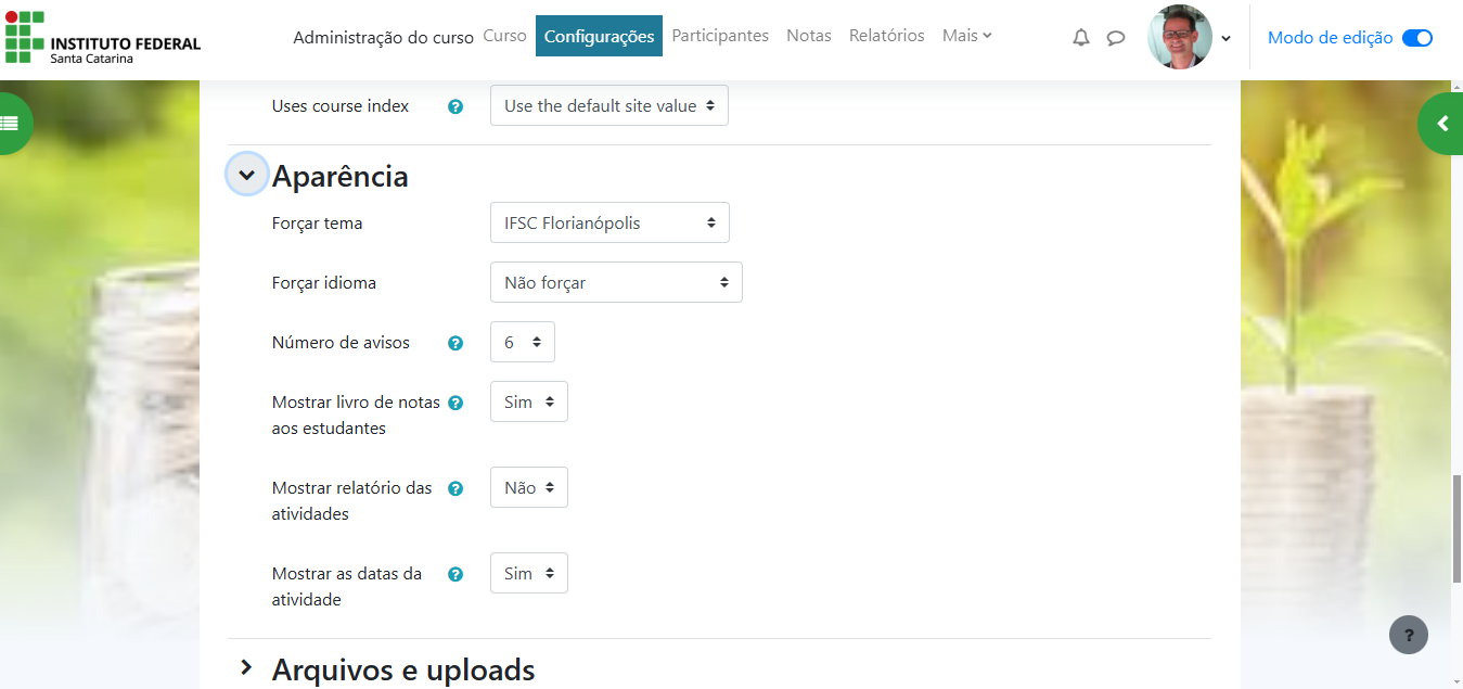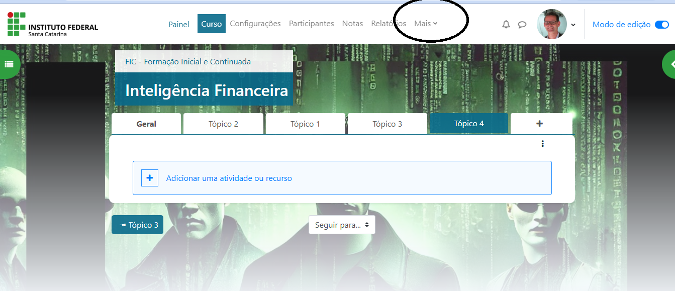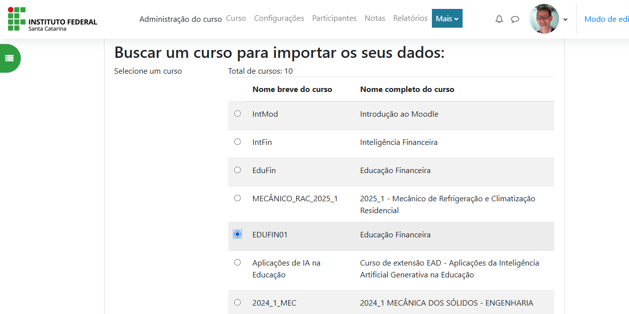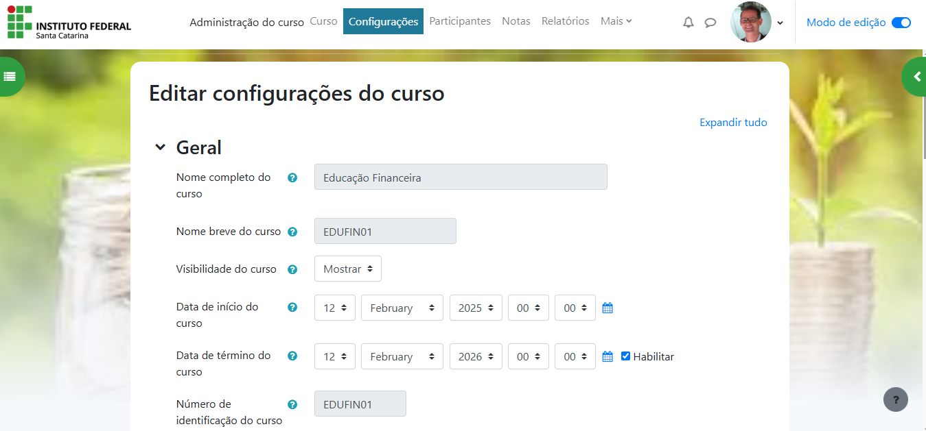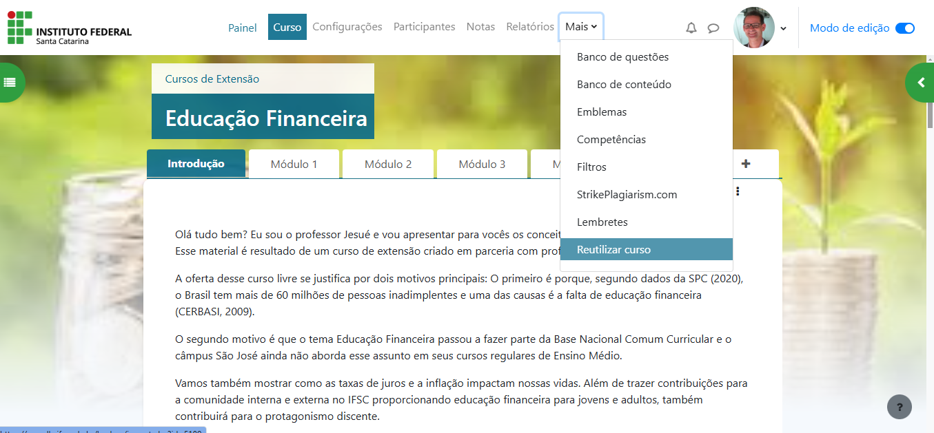 Vamos utilizar como modelo o curso de Educação Financeira do câmpus São José