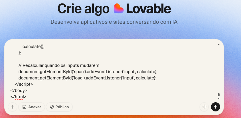 Para começar, crie uma conta no Lovable. Você tem 5 créditos por dia.