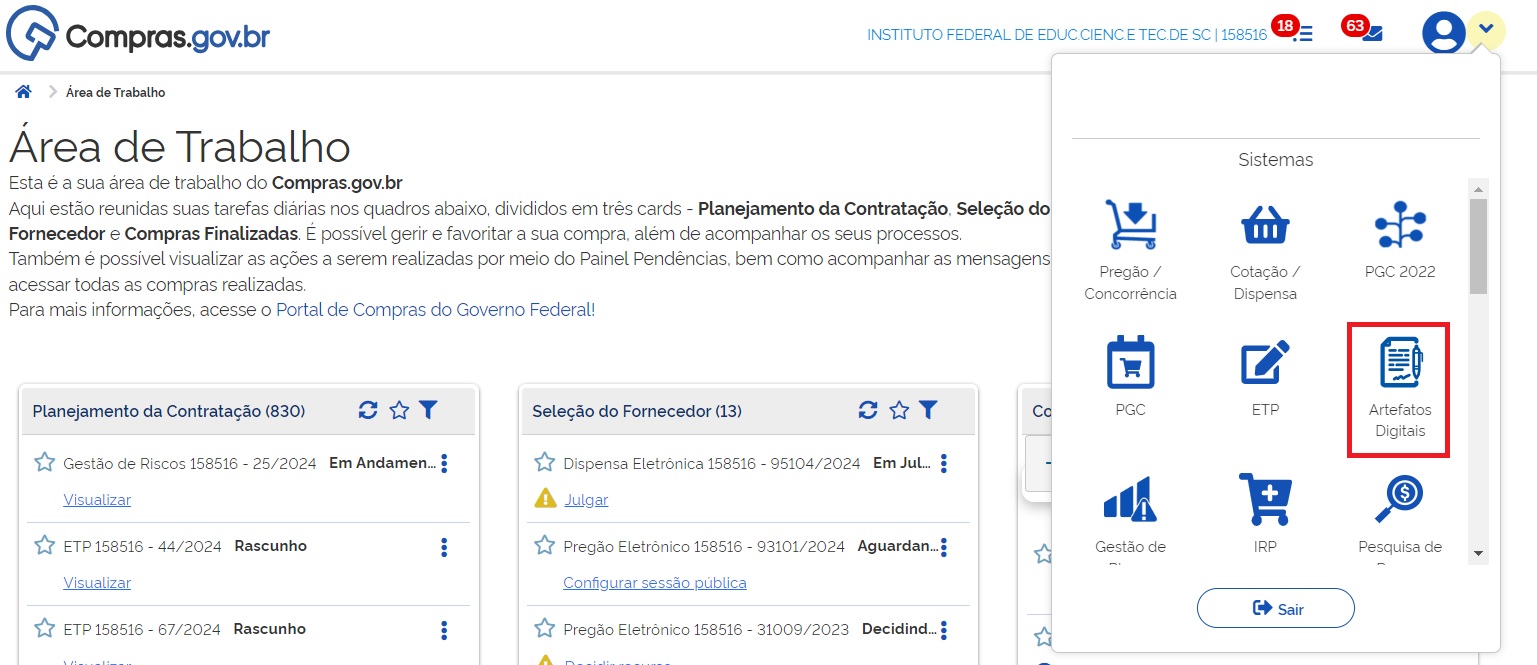 Informamos, ainda, que até a implantação definitiva do novo sistema de divulgação de licitações no Compras.gov, os editais, contratos e atas de registro de preços não devem ter suas minutas geradas no sistema de artefatos digitais.