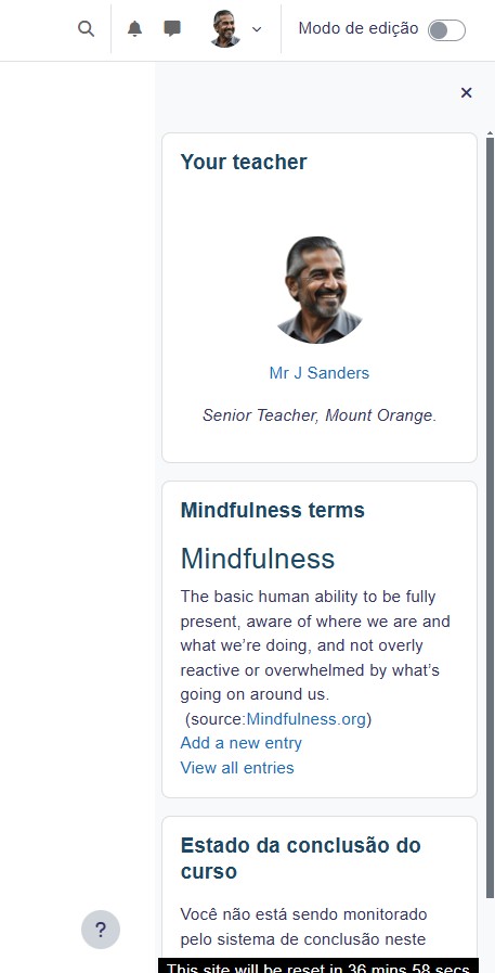 - Mostrar descrição na página do curso: se habilitada, será apresentada na área de trabalho, junto ao link para acesso à atividade ou recurso.