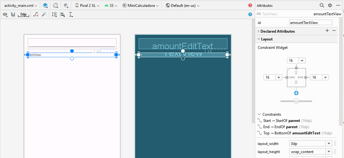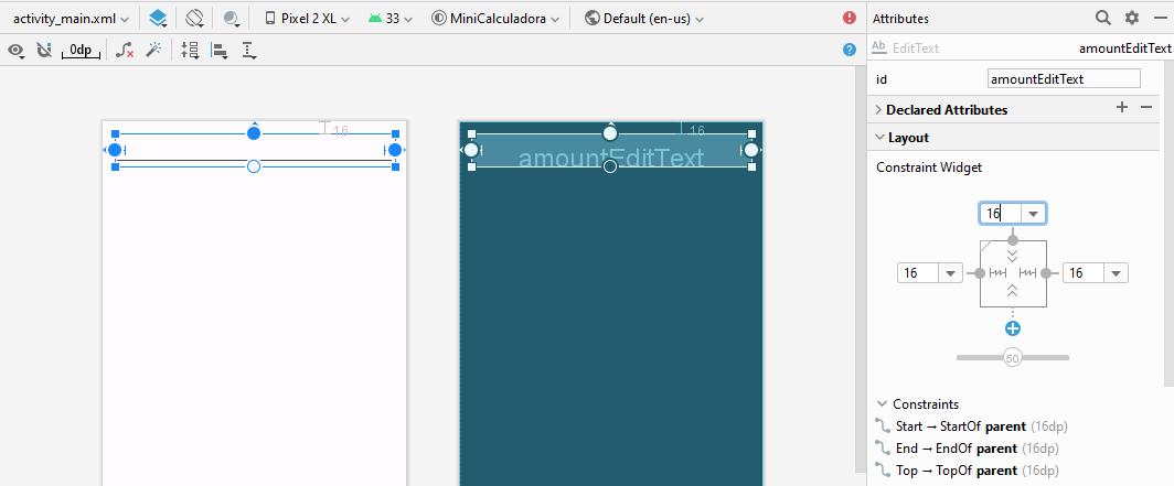 - Defina a propriedade id como amountEditText