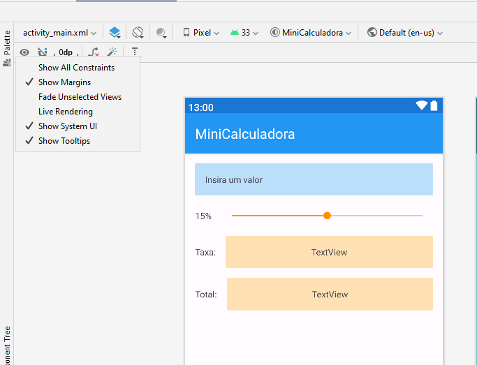- Abra o arquivo activity_main.xml