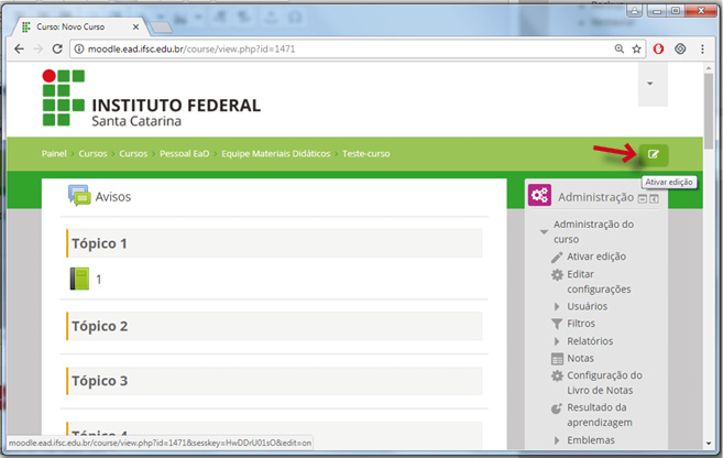 O primeiro passo é clicar em: “ATIVAR EDIÇÃO”.