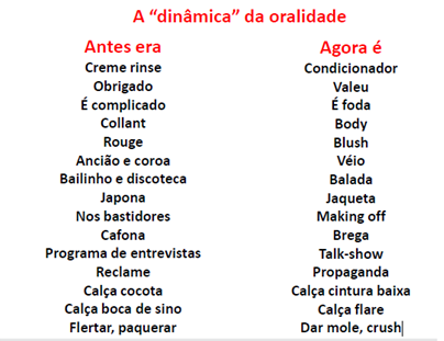 A língua falada é dinâmica e muda rápido. Ou seja, nós vamos adaptando as palavras e o jeito de falar dependendo da situação, da época, dos costumes. Tudo para ficar mais fácil nossa comunicação, então usamos também os gestos e a entonação. O importante na fala é se fazer entender.