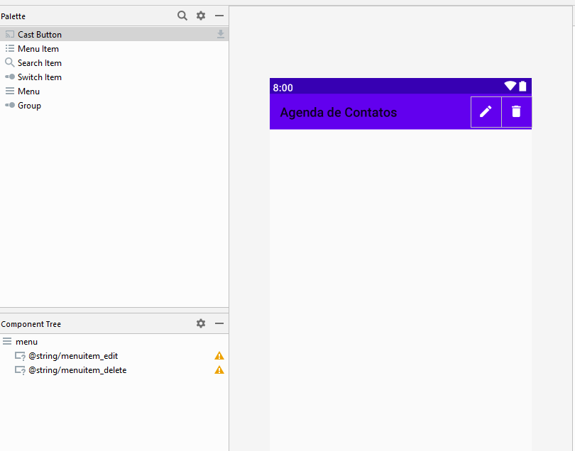 Pronto. Construímos um menu para o DetailsFragment com as opções de editar e deletar um contato.
